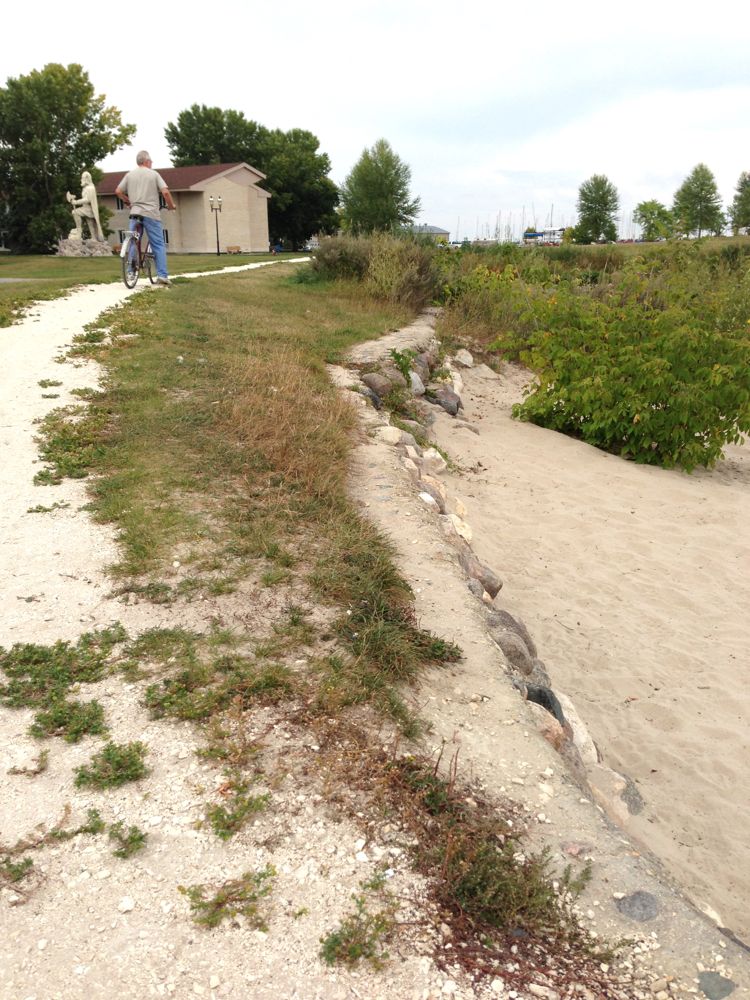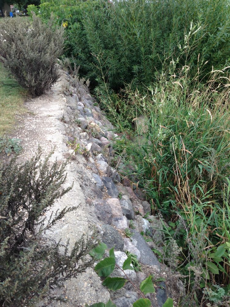 Thankfully the town left the old breakwater exposed. It still shows through the grass and is still used as a bike path.
